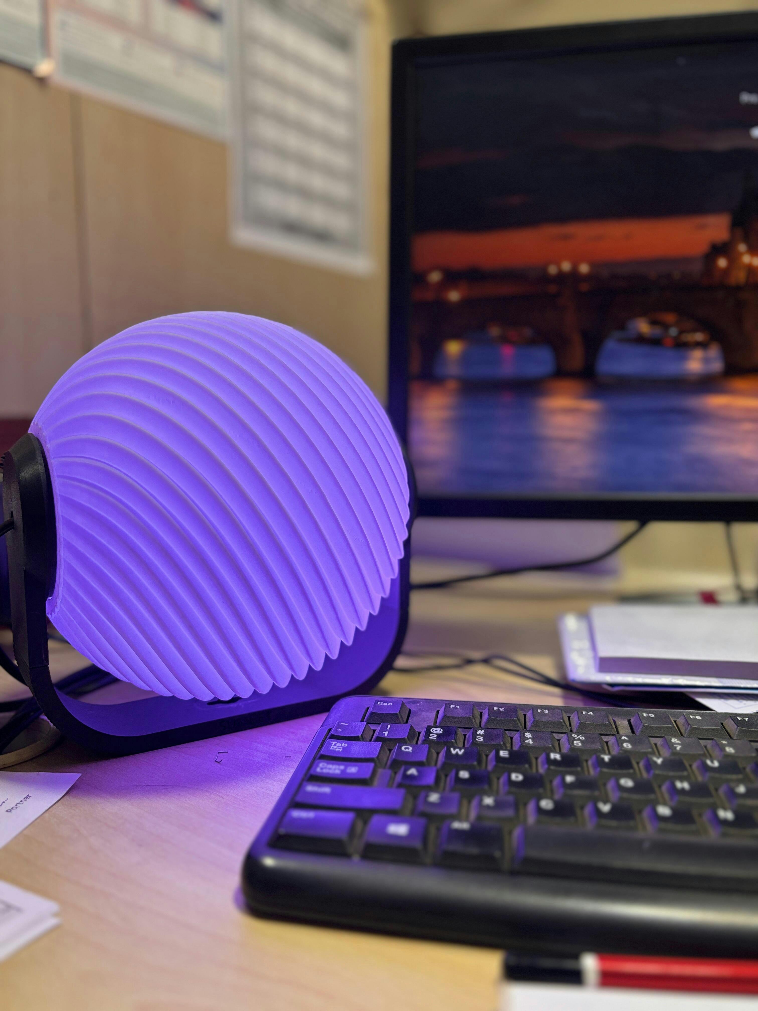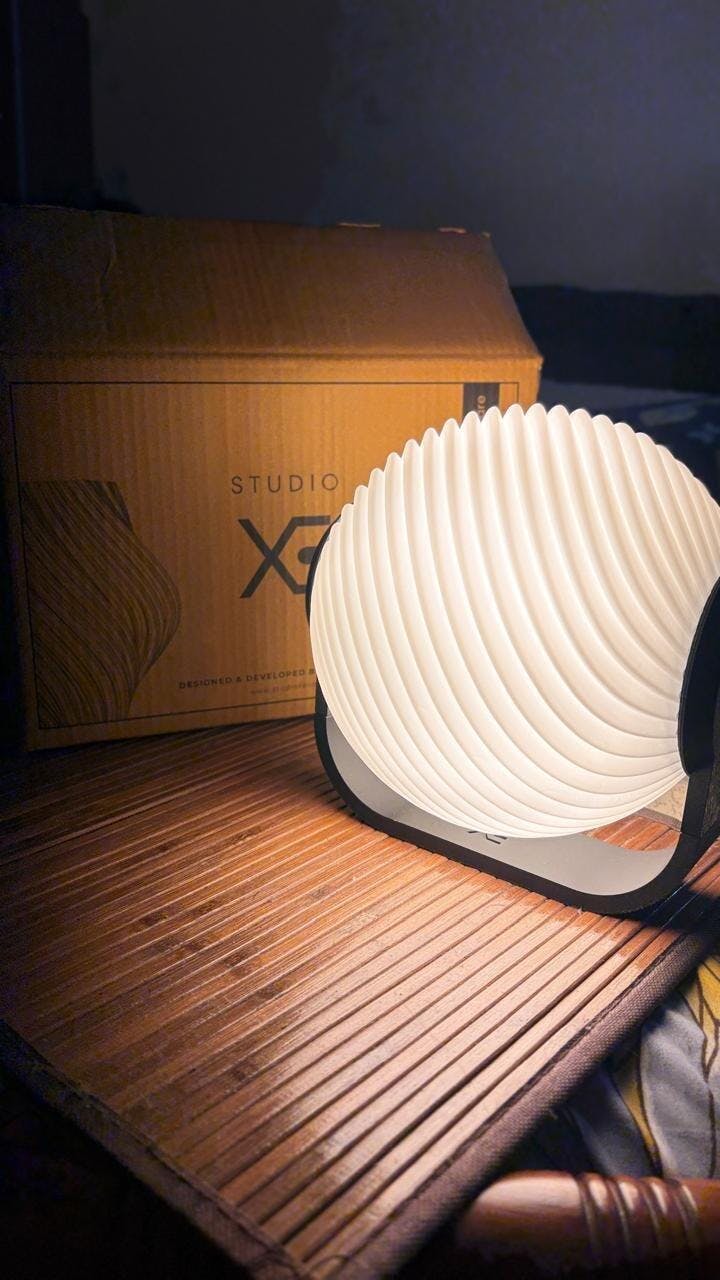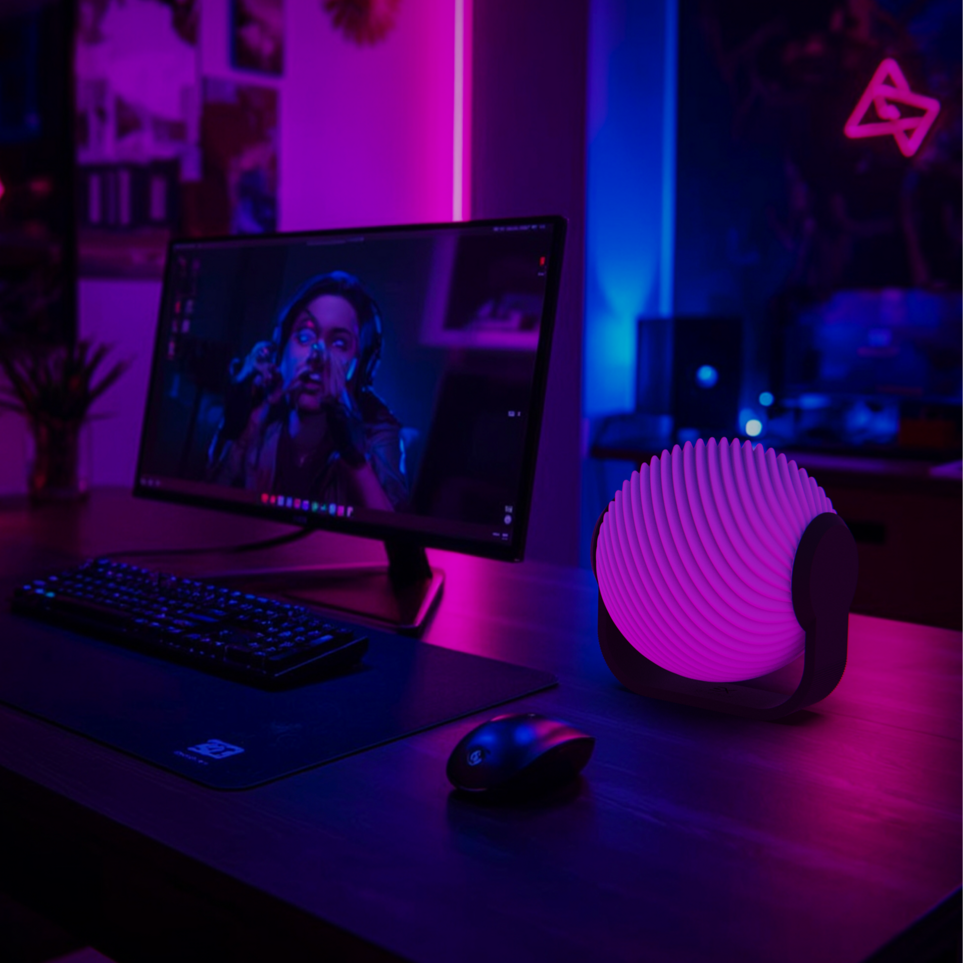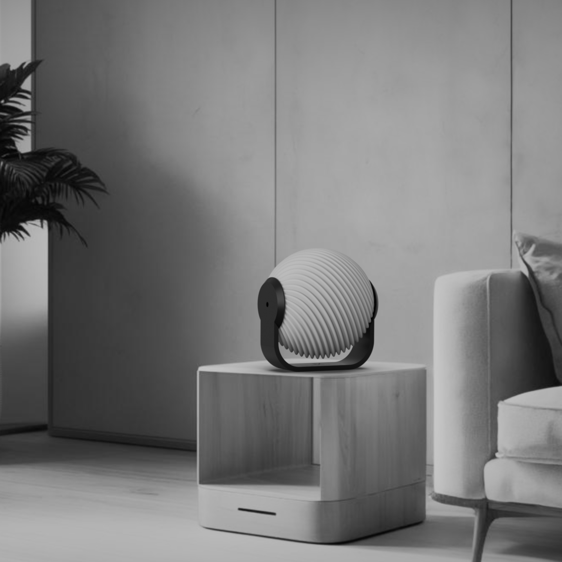 Unlike ordinary lamps, Dune is interactive. The spherical body gently rotates within its stand, creating a calming motion that’s as therapeutic as it is beautiful. Whether it’s a mindful moment at your desk or quiet time before bed, Dune becomes a meditative companion that glows softly while you spin.
