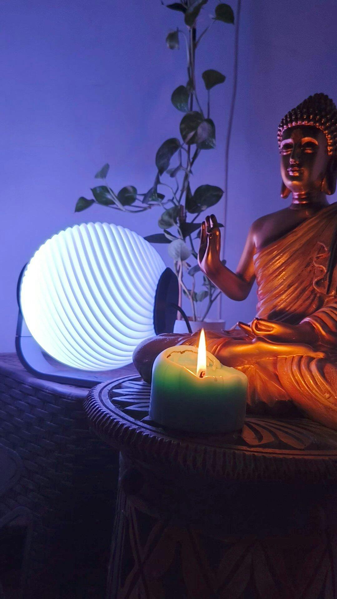 Warm Ambient Glow – Emits a soft, diffused light perfect for cozy evenings, desk-side ambiance, or meditative corners.