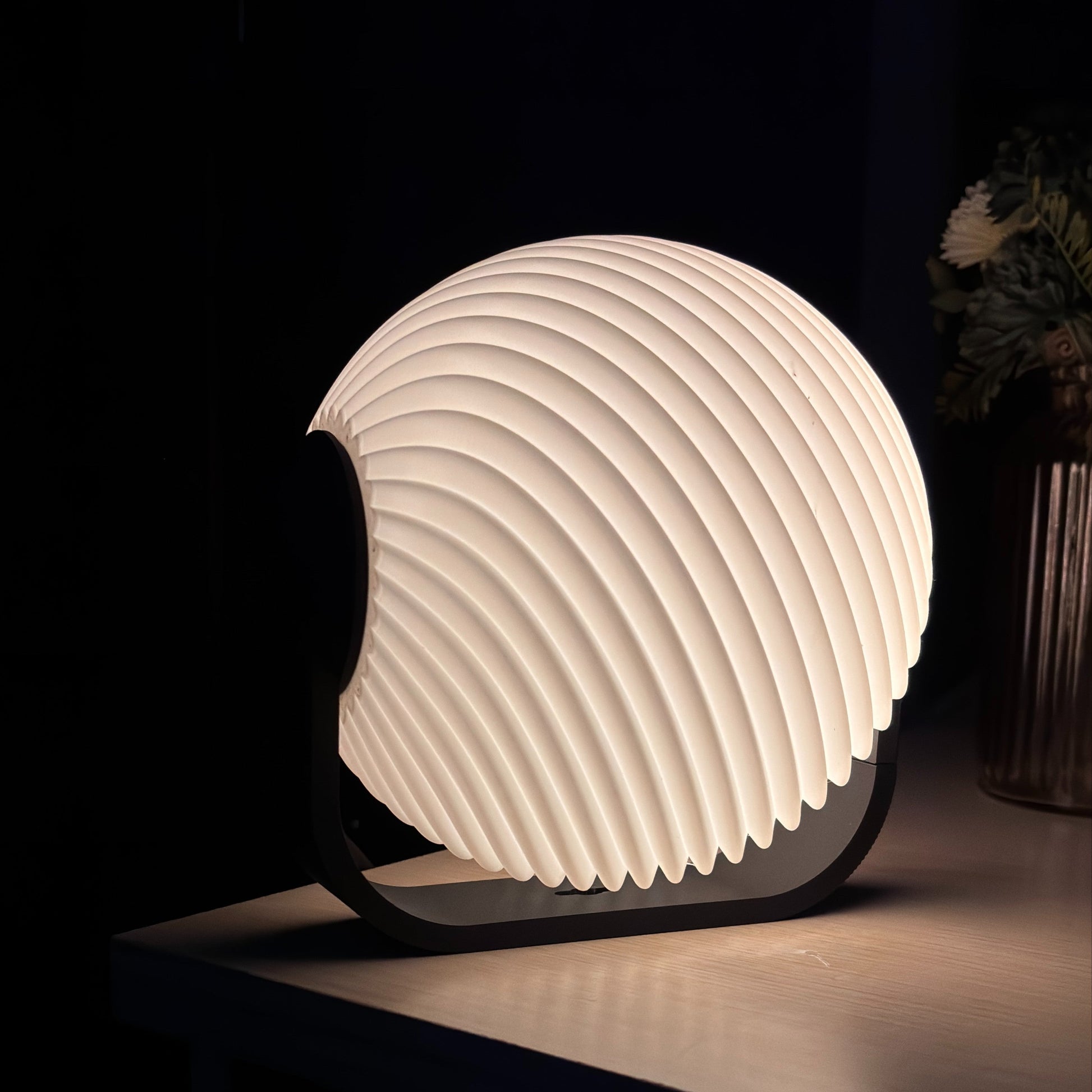 Each piece is 3D printed in 22 hours using sustainable, light-diffusing bioplastic. Hand-assembled in our home studio, Dune is a small sculpture of warmth and movement, designed to bring intentional design into everyday living.